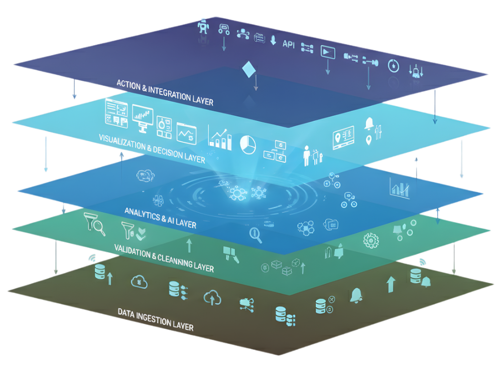 - Recognizes and classifies incoming data as real-time, historical, or survey-based, routing it automatically for processing.